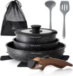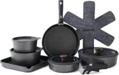Non-toxic, PFOA-free non-stick coating.Includes essential pots and pans for everyday cooking.