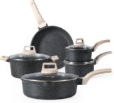 Compatible with induction and all stovetops.Durable non-stick coating for easy cooking and cleaning.