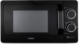 Large 20-litre capacity and 270mm glass turntable fit standard dinner plates comfortably.