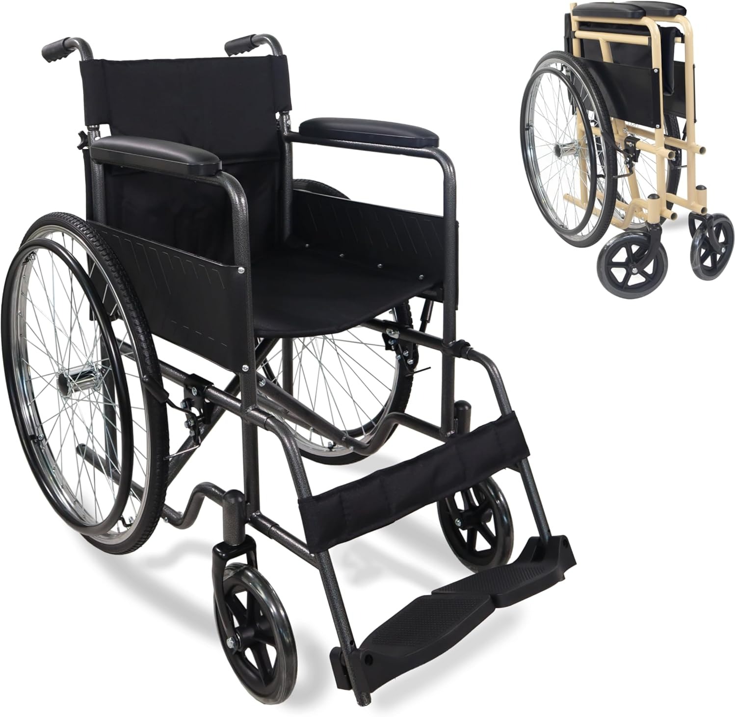 Adjustable footrests for comfort.